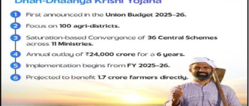 In July 2025, the Union Cabinet approved the Prime Minister Dhan-Dhaanya Krishi Yojana (PMDDKY), a new flagship scheme aimed at transforming agriculture in 100 identified low-productivity districts. The programme focuses on the convergence of multiple schemes, better planning, and efficient resource utilization at the district level. The initiative draws inspiration from the Aspirational Districts Programme (ADP) launched in 2018, which successfully improved key development indicators in India's most backward districts.